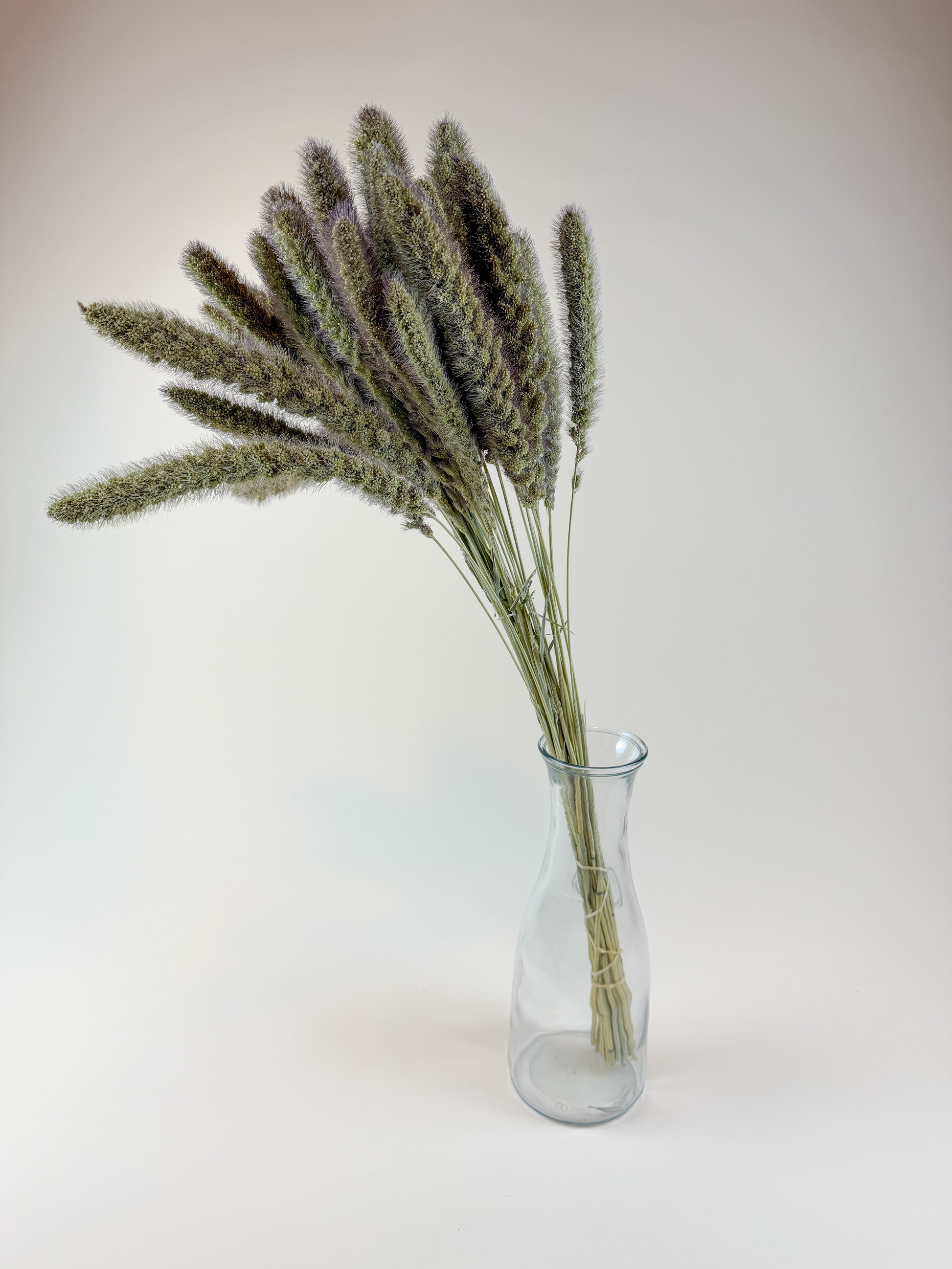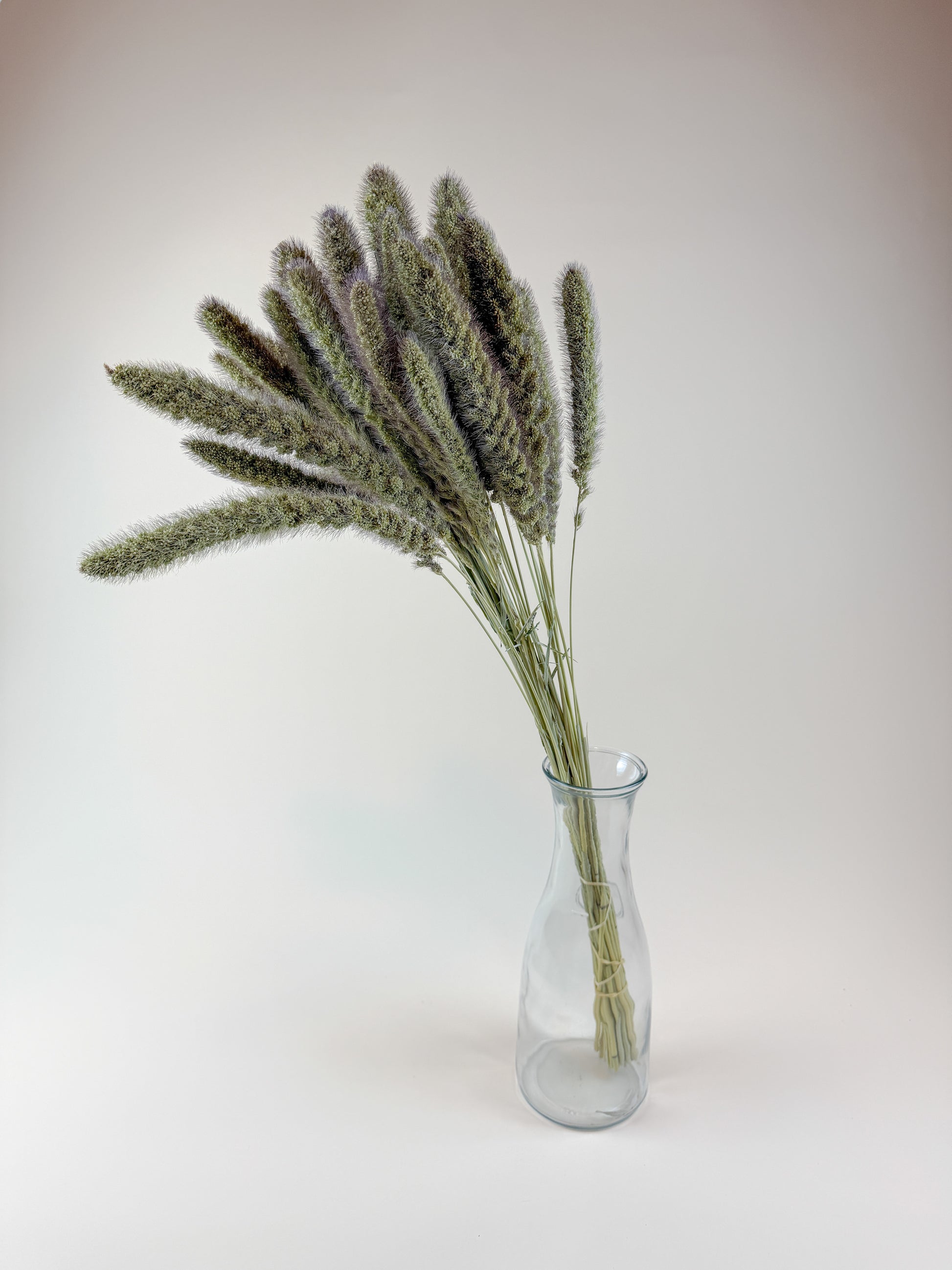 Our German Millet features striking green stems and pods accented with natural black tones, offering a bold and unique focal point for dried floral arrangements and rustic décor. The thick, strong stems have been carefully defoliated to enhance texture and design versatility. Each head varies in shape, adding dynamic interest and dimension to bouquets, wreaths, and centerpieces.