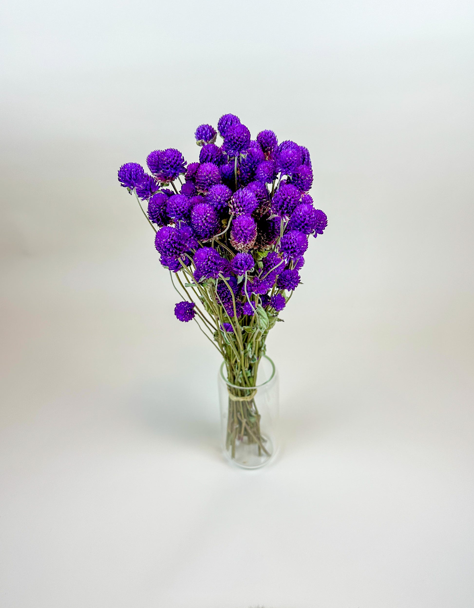 Purple Globe Amaranth adds a vibrant pop of color and timeless charm to dried floral designs. Featuring naturally air-dried, clover-like globe blooms in rich purple tones, this long-lasting flower is ideal for bouquets, wreaths, boutonnieres, and boho-inspired decor. Its compact, rounded form and bold hue make it a standout in both rustic and modern arrangements.