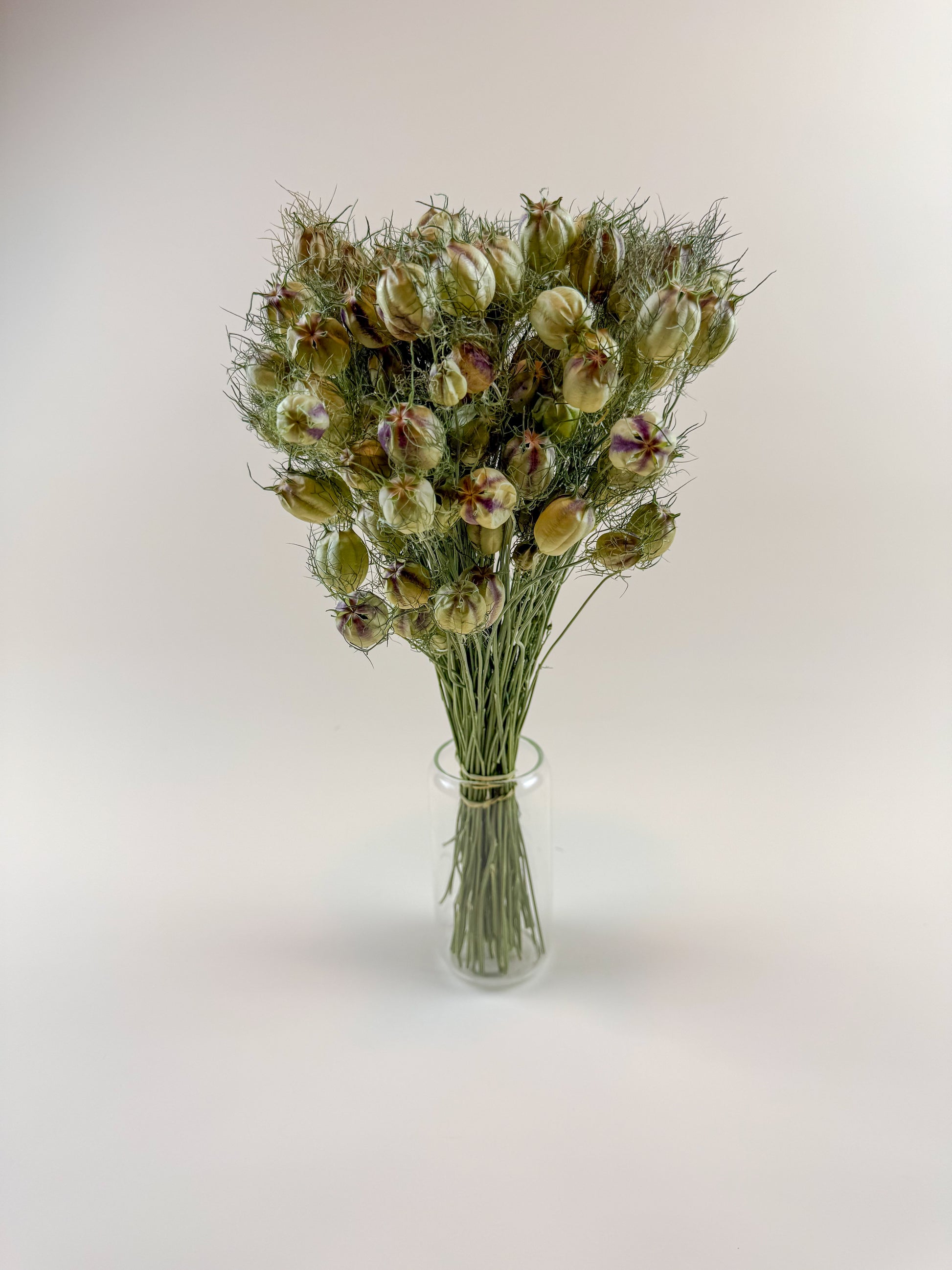 Perfect for bouquets, wreaths, centerpieces, and craft projects, Nigella pods bring a sculptural and vintage touch to floral designs. Each bunch is dried using ambient air with no added dyes, preservatives, or chemicals, preserving its natural color and structure for years when stored out of direct sunlight.